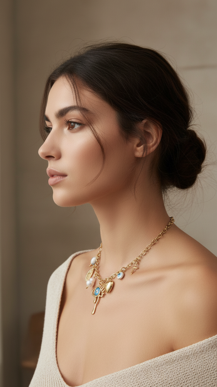 Affirmez votre style avec notre Collier Charm Set Audacieux, la pièce maîtresse inspirée des tendances les plus convoitées.
