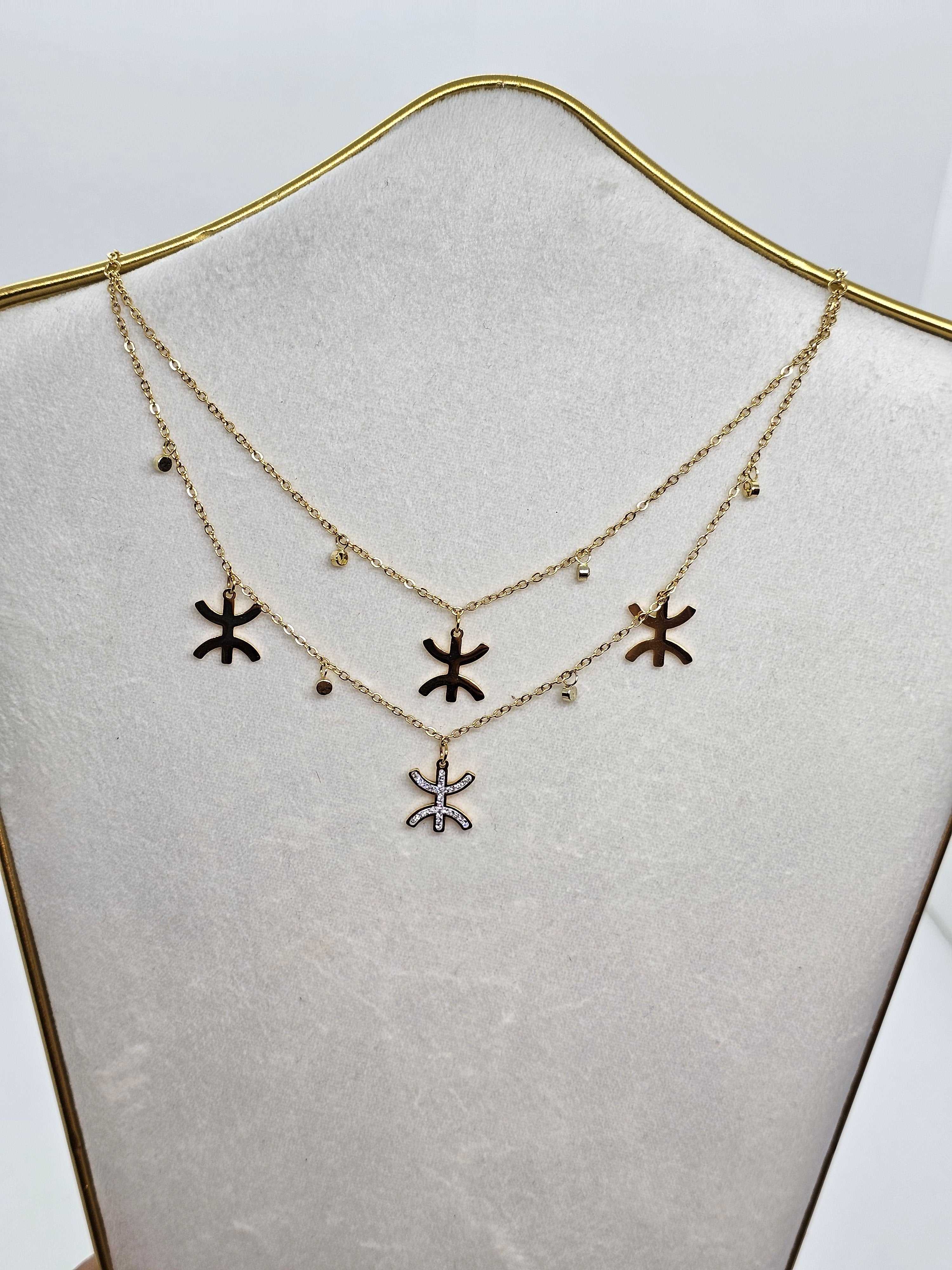 Découvrez le Collier kabyle prestige, une pièce unique en acier inoxydable 316L offrant un effet 2en1 élégant. Son design empêche les chaînes de s'emmêler, vous offrant ainsi un bijou durable et facile à porter. Ajoutez une touche de prestige à votre tenue avec ce magnifique collier.