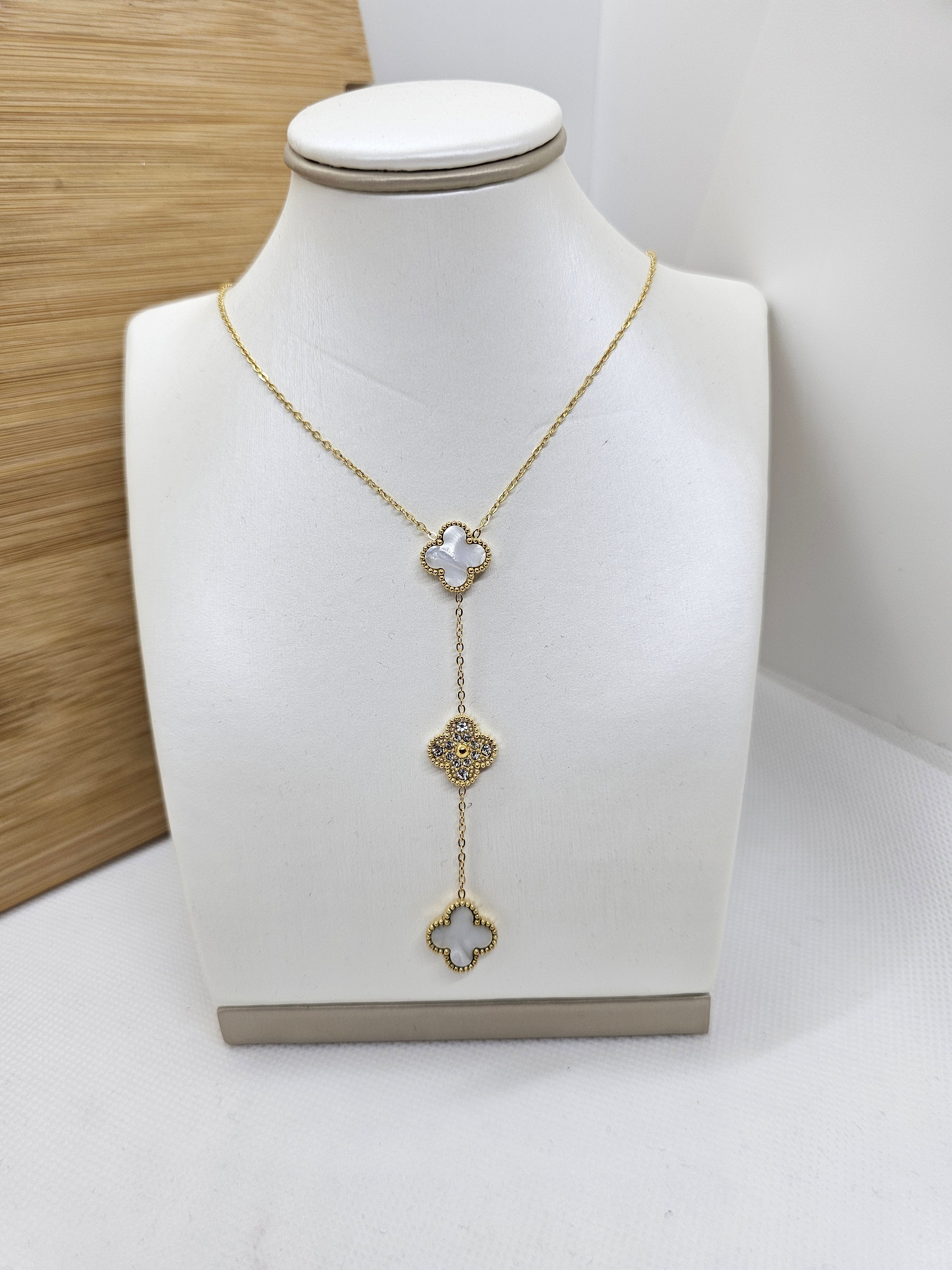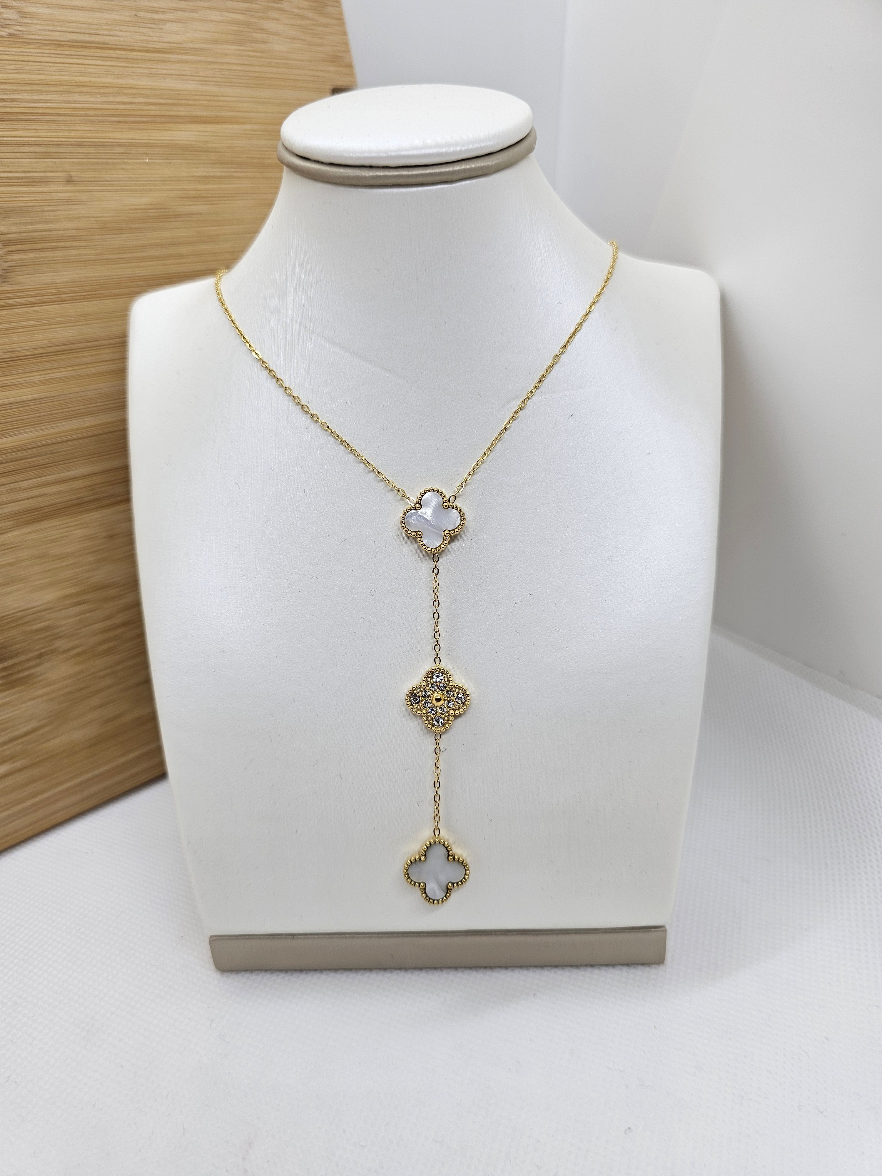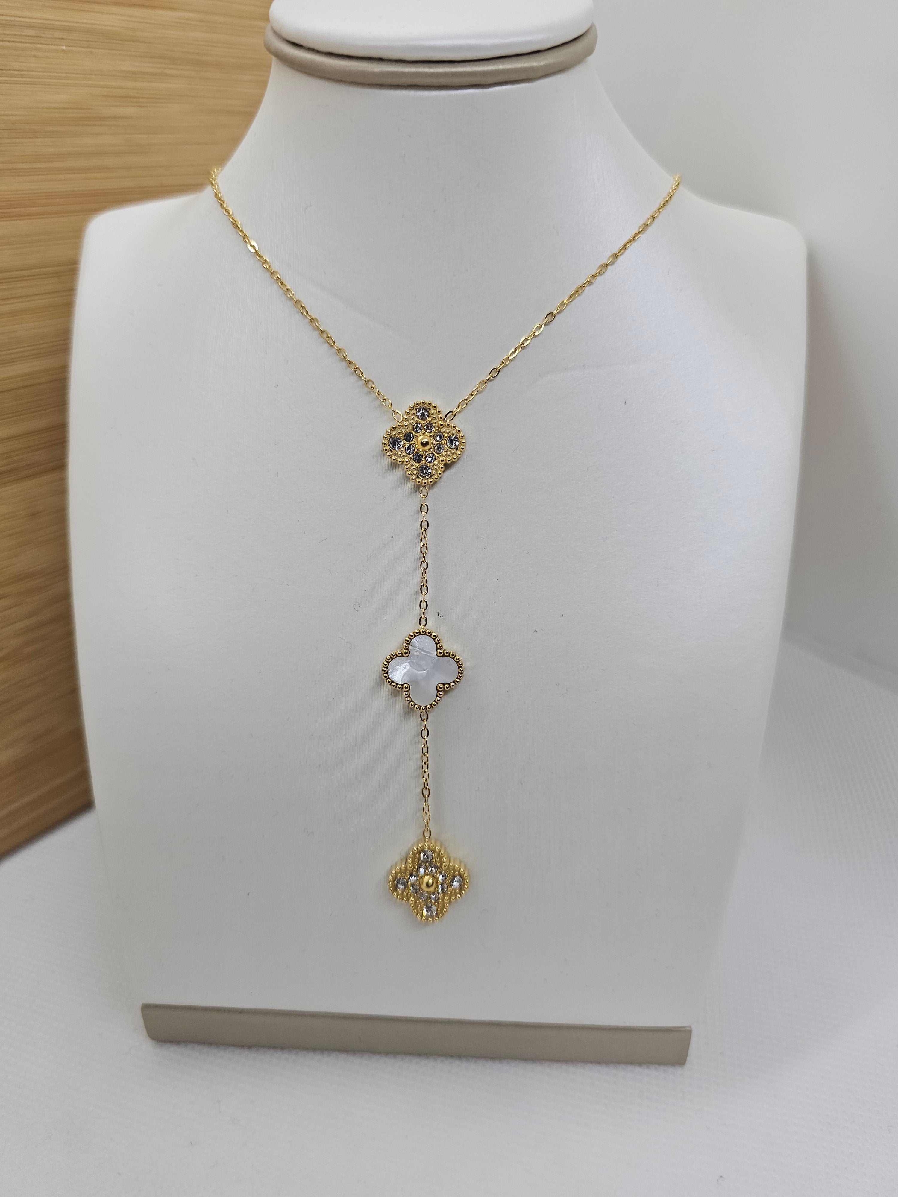 Ce collier LILI en acier inoxydable hypoallergénique est un accessoire polyvalent. Les fleurs recto-verso offrent différentes options de porter. Ne noircit pas et ne rouille pas. Alliant beauté et durabilité, il est idéal pour tous les jours ou les occasions spéciales.