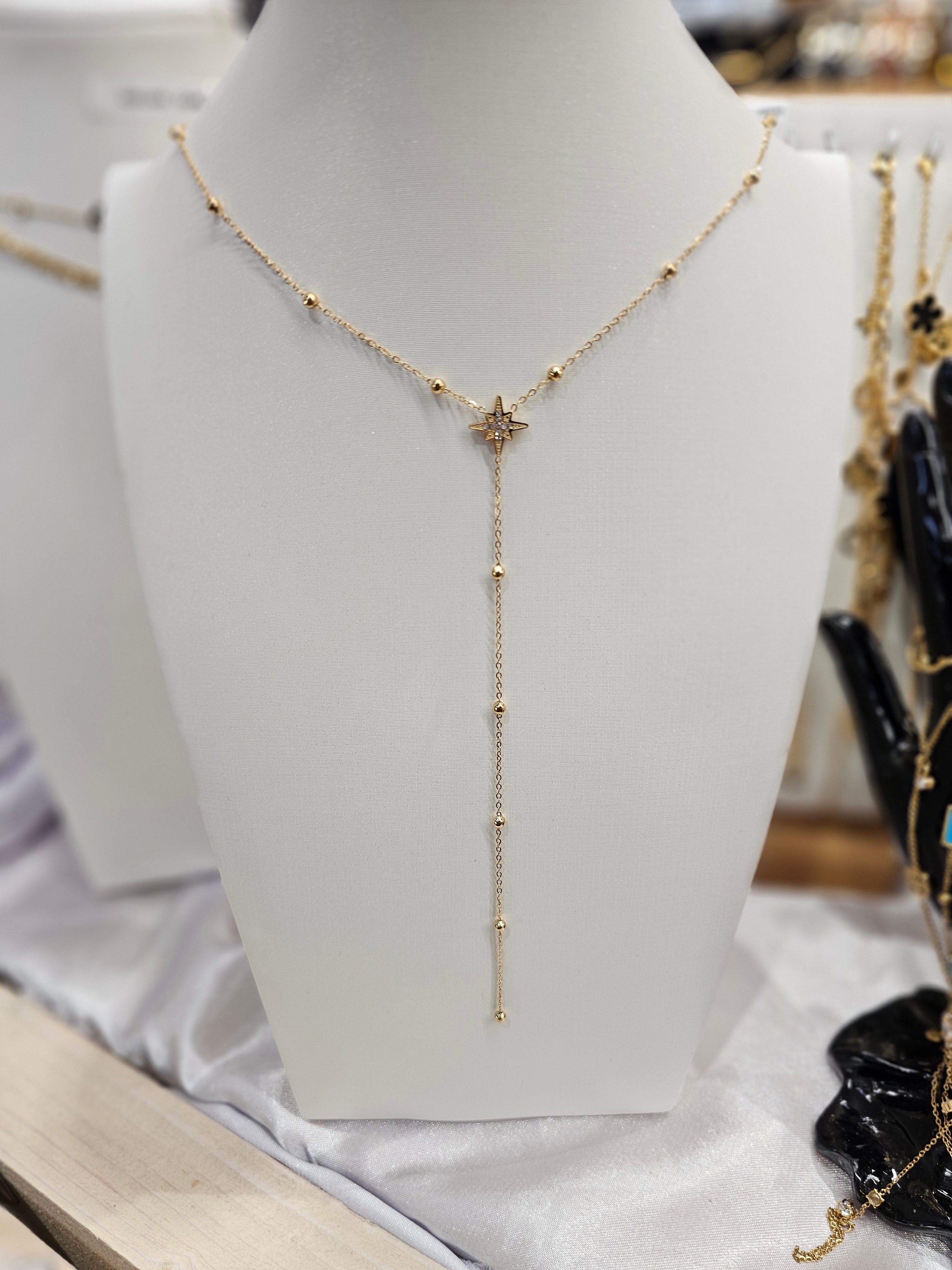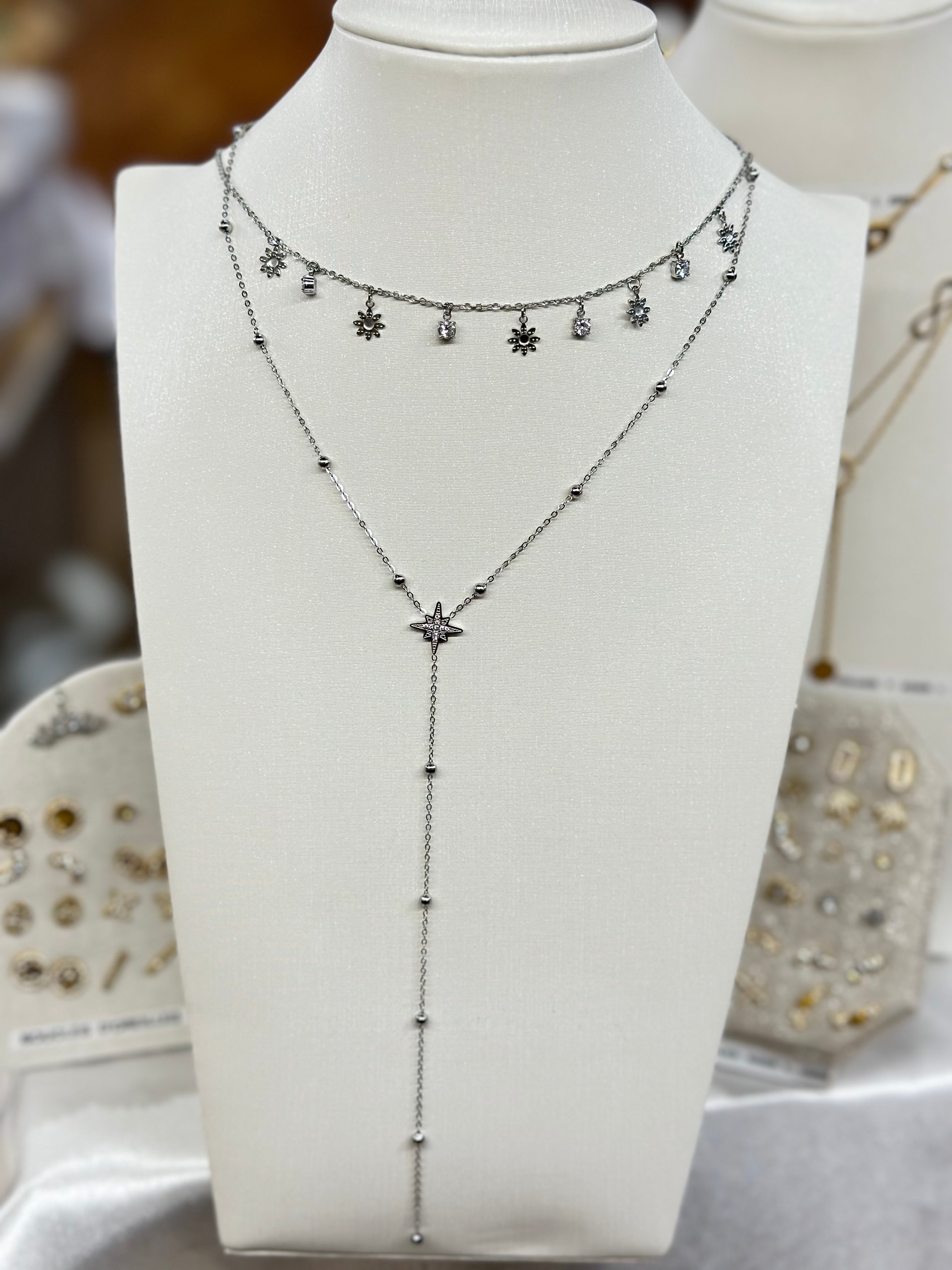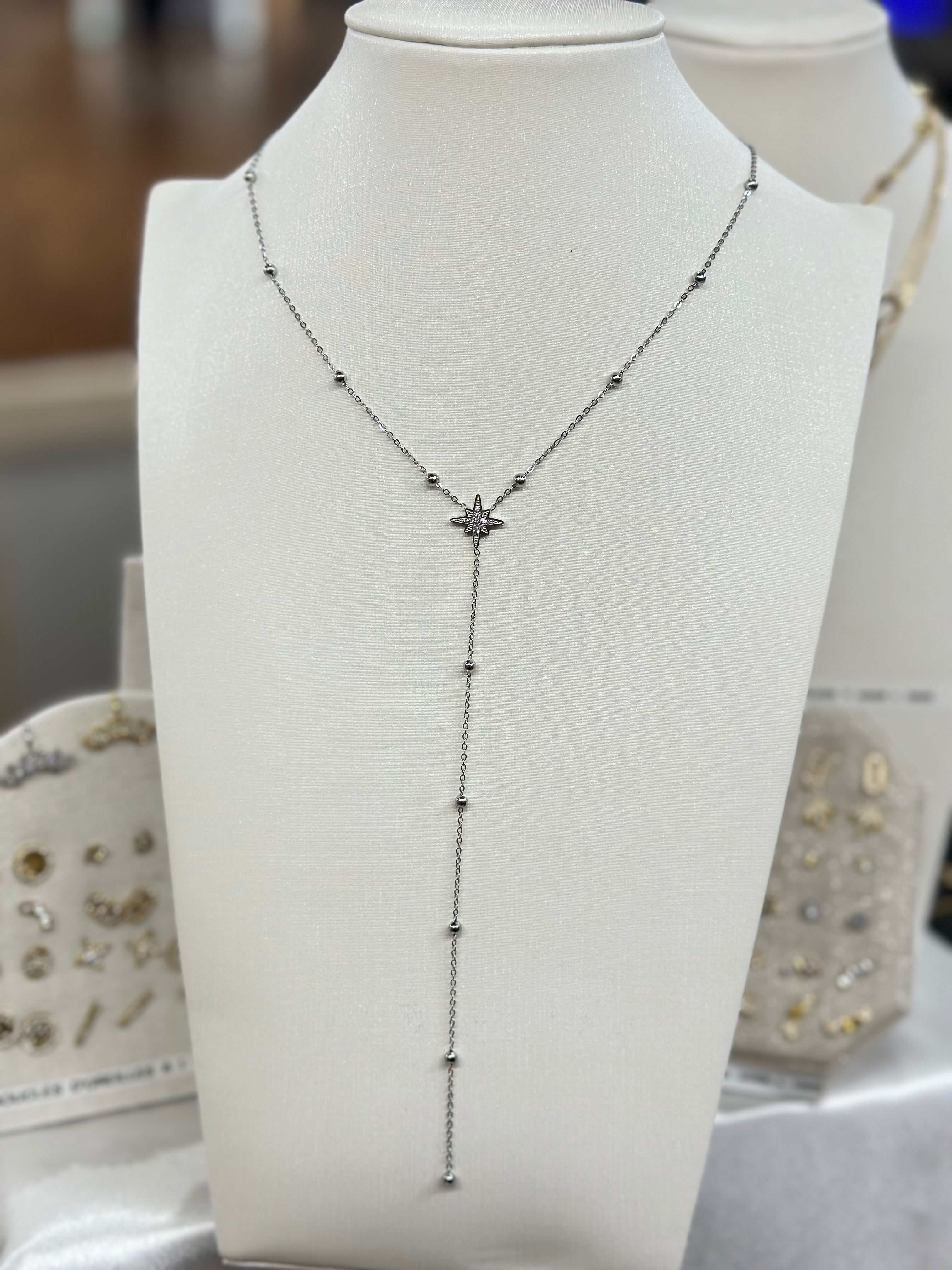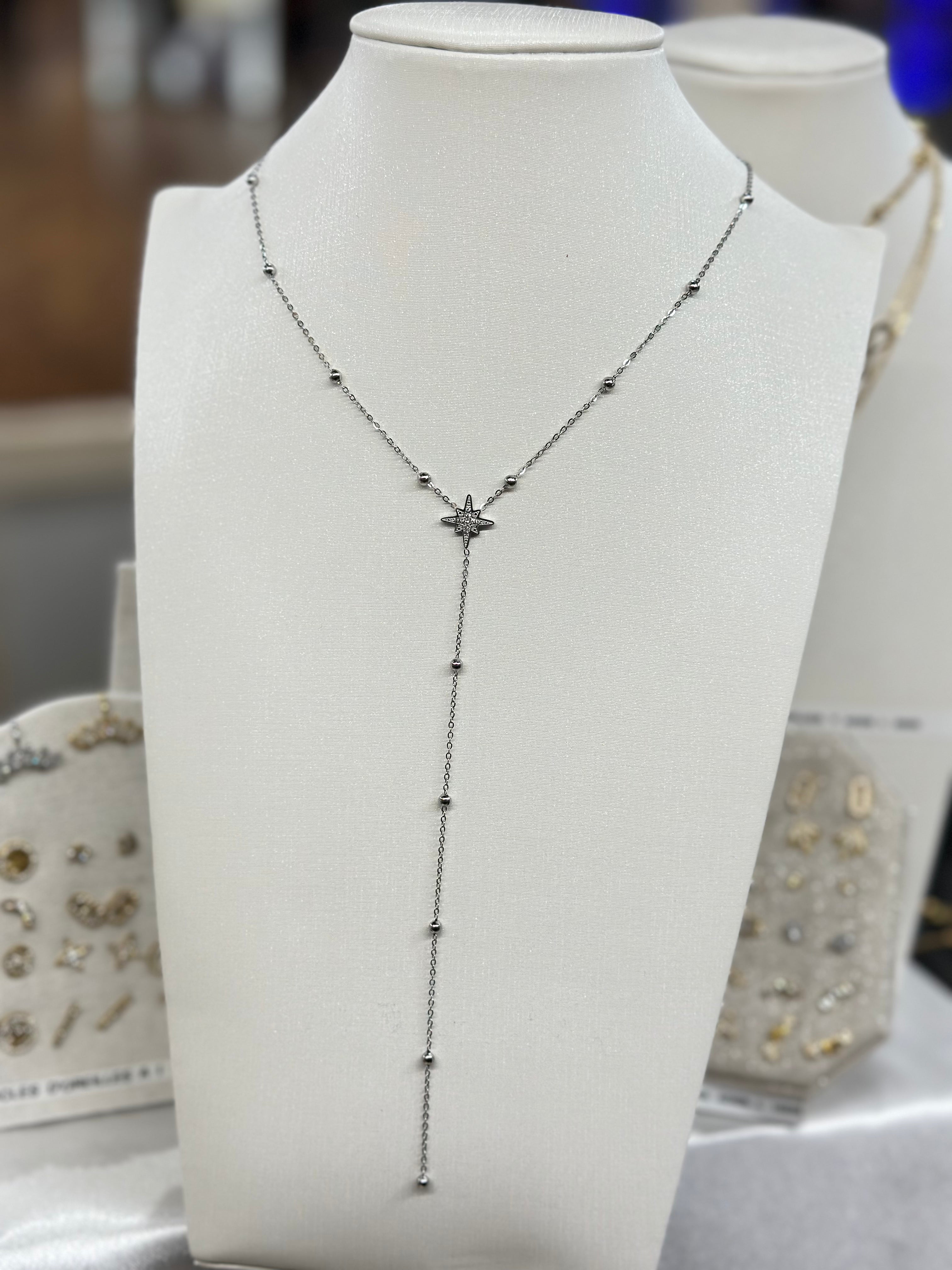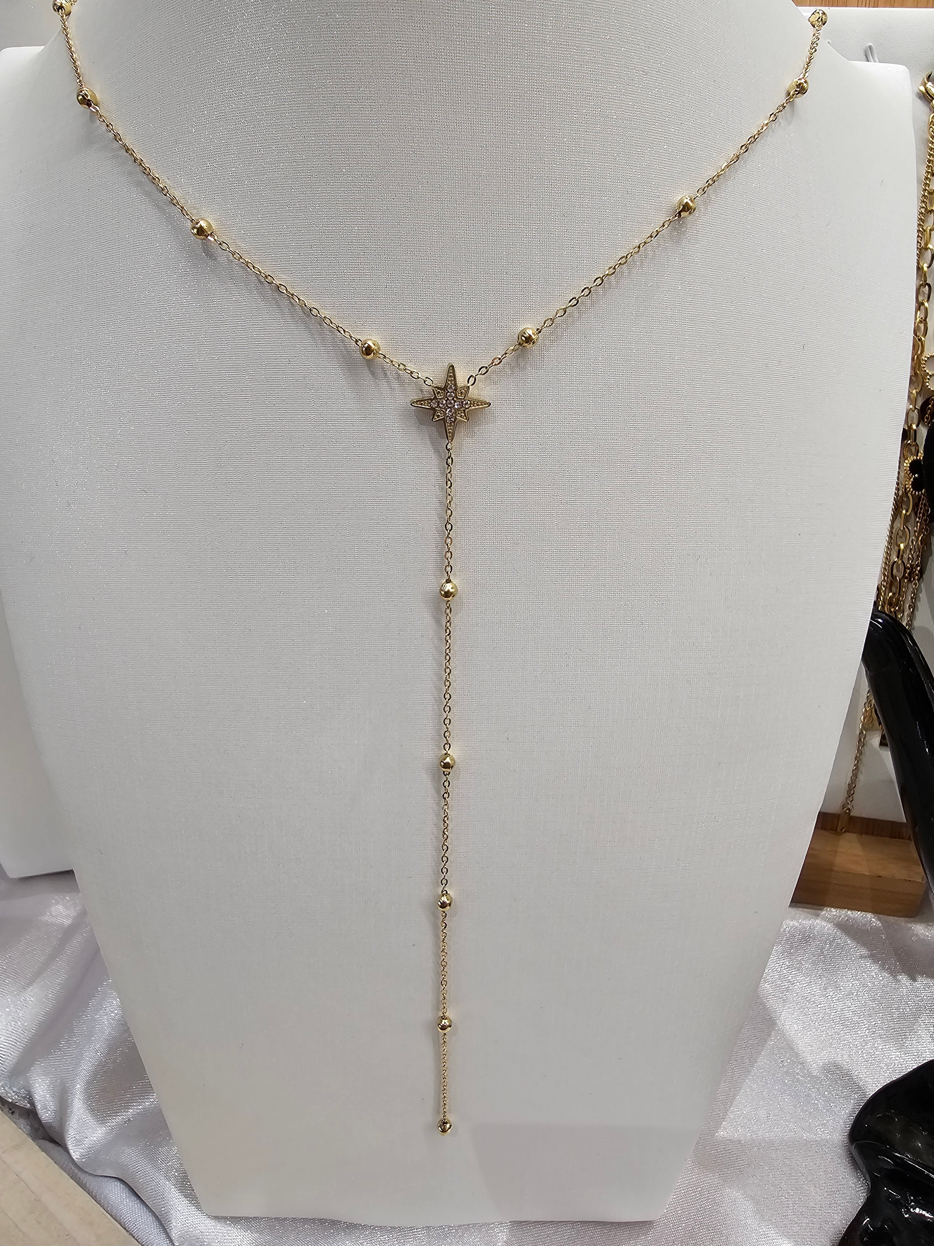 Magnifique collier y en acier inoxydable serti émergeant et raffiné