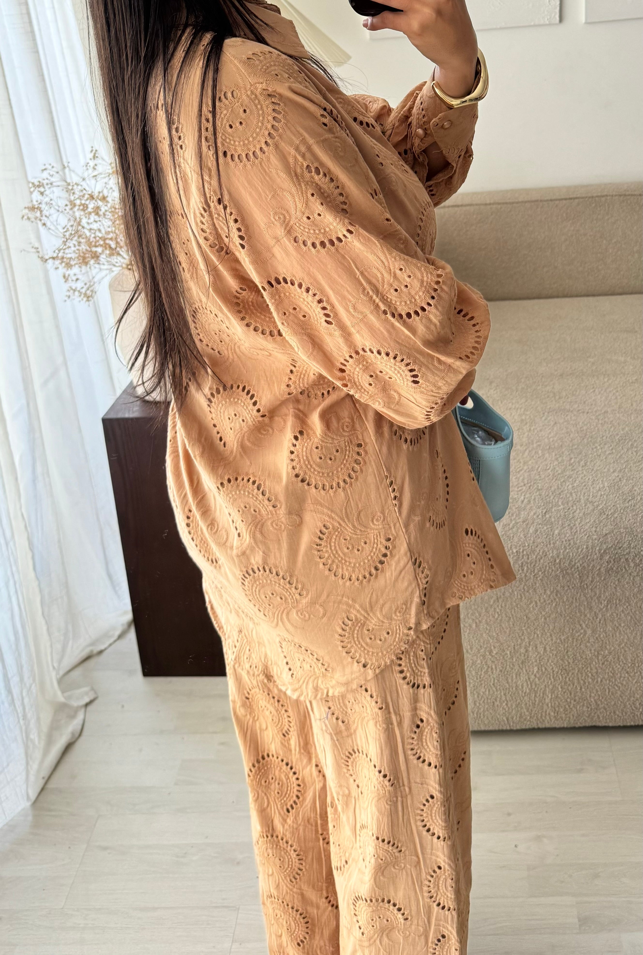 cet ensemble en broderie anglaise, avec sa doublure et son design magnifique, vous apporte confort et style. Sa taille légèrement plus grande offre une coupe flatteuse. Pour toute information supplémentaire, contactez-moi via WhatsApp au 0604520914.