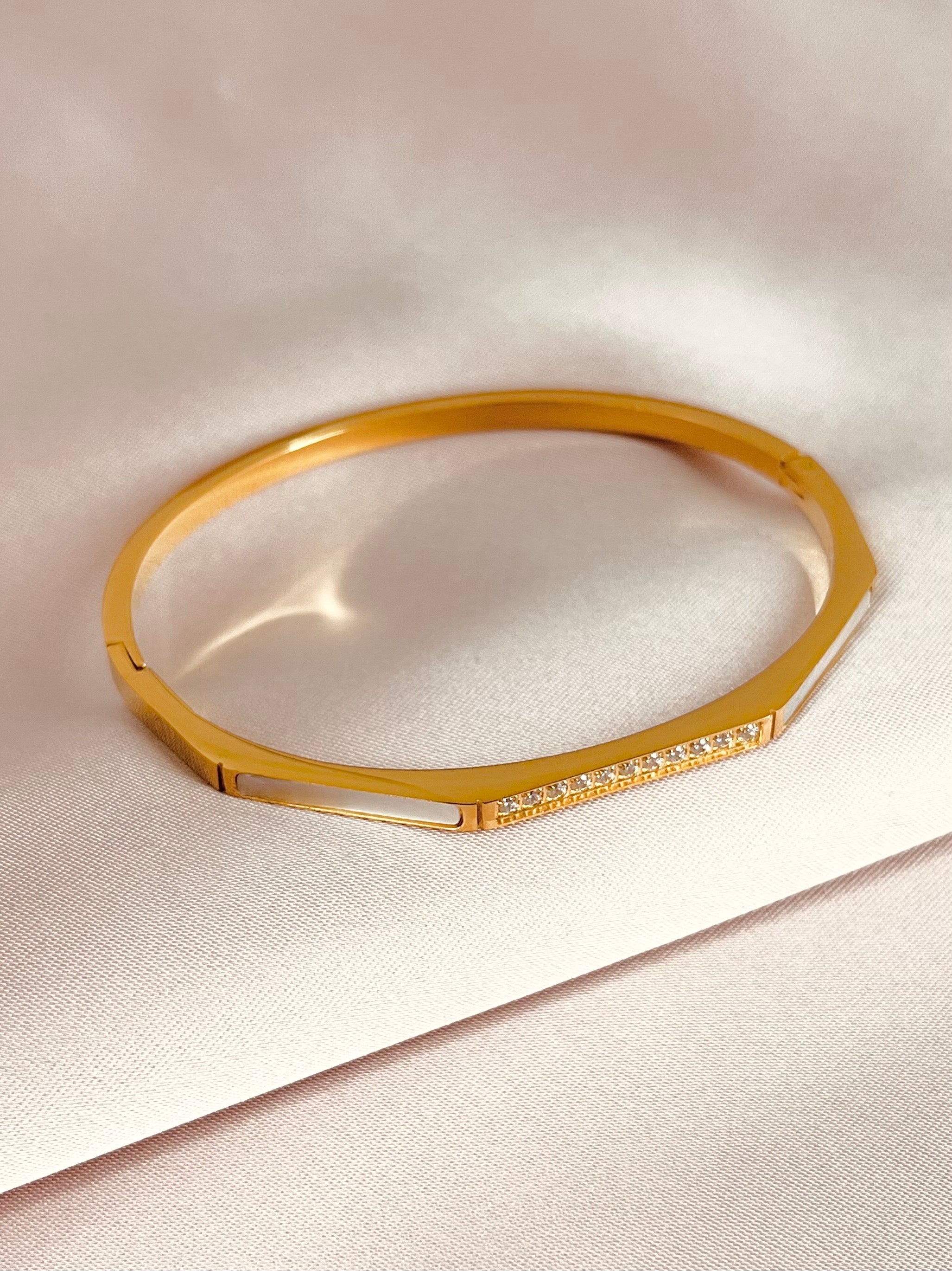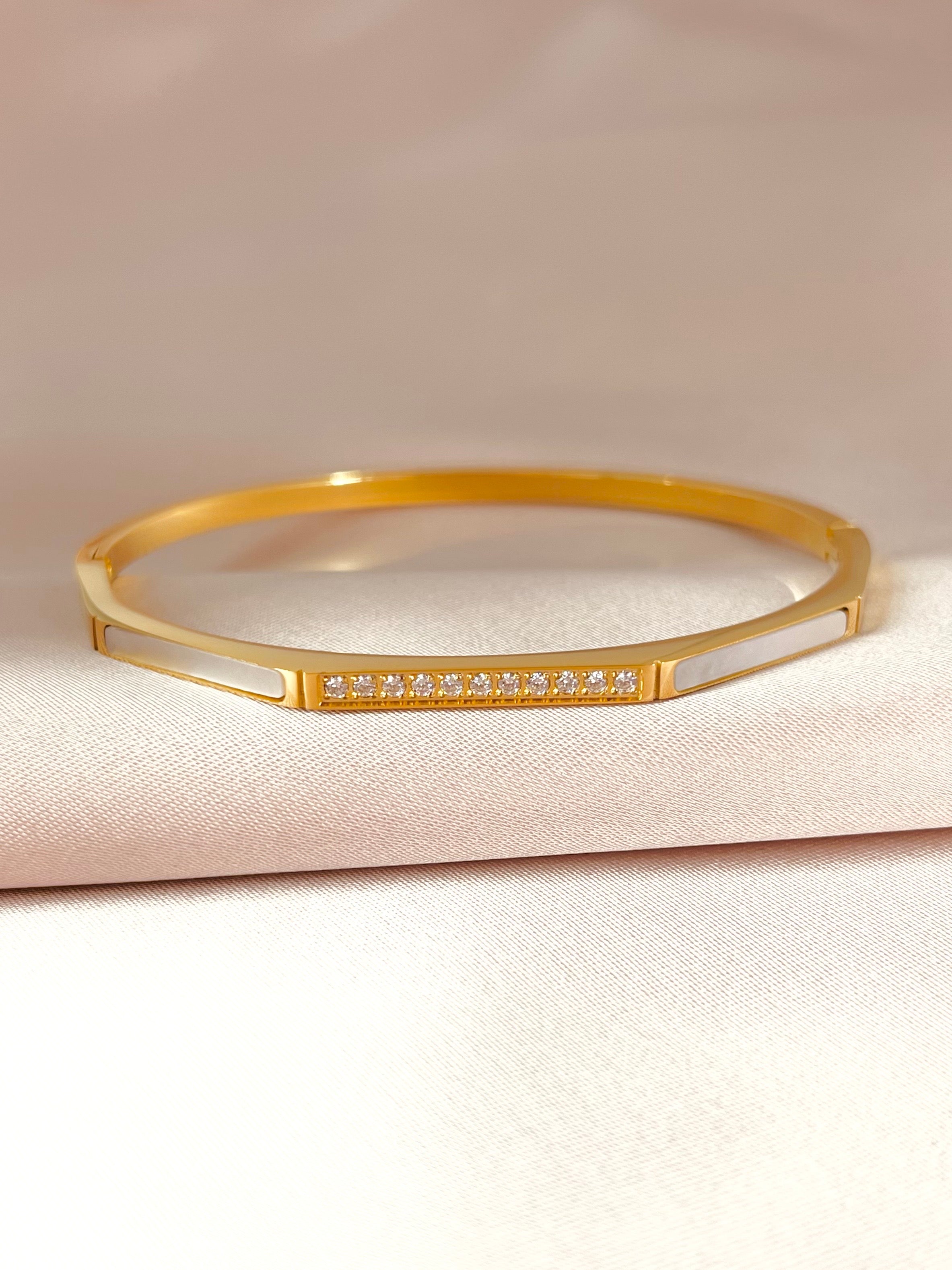 Le Jonc Anissa est un magnifique bracelet jonc en acier inoxydable de très haute gamme. Doté d'une couche de nacré blanc, il est le bijou parfait pour affirmer votre style. Mettez-vous en valeur avec le Jonc Anissa.