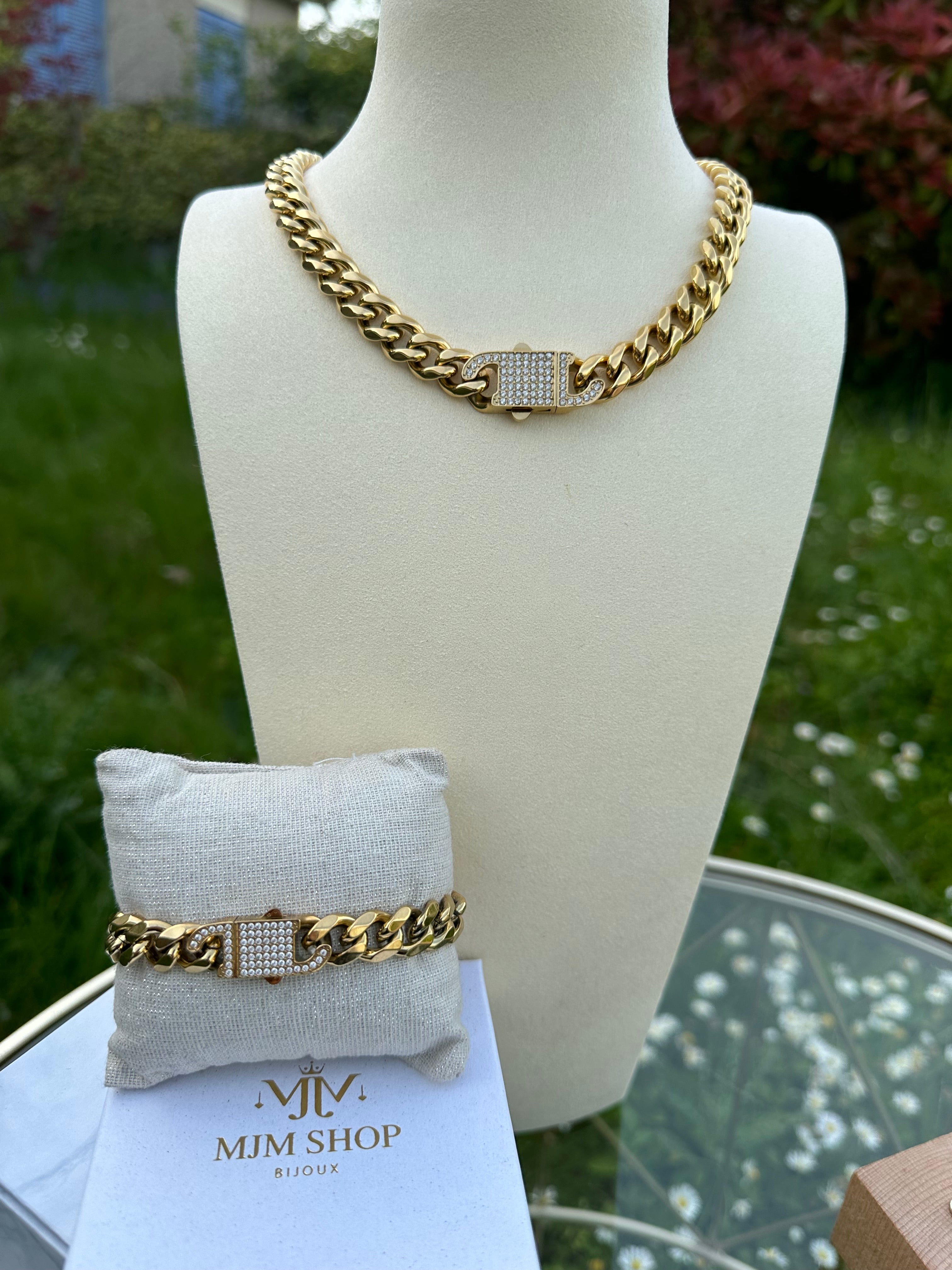 La parure Monica en acier inoxydable 18k est conçue pour durer grâce à sa résistance à la rouille et à la décoloration. Portez-la avec confiance et profitez de son aspect élégant qui ne ternira pas avec le temps. Idéale pour toutes les occasions.