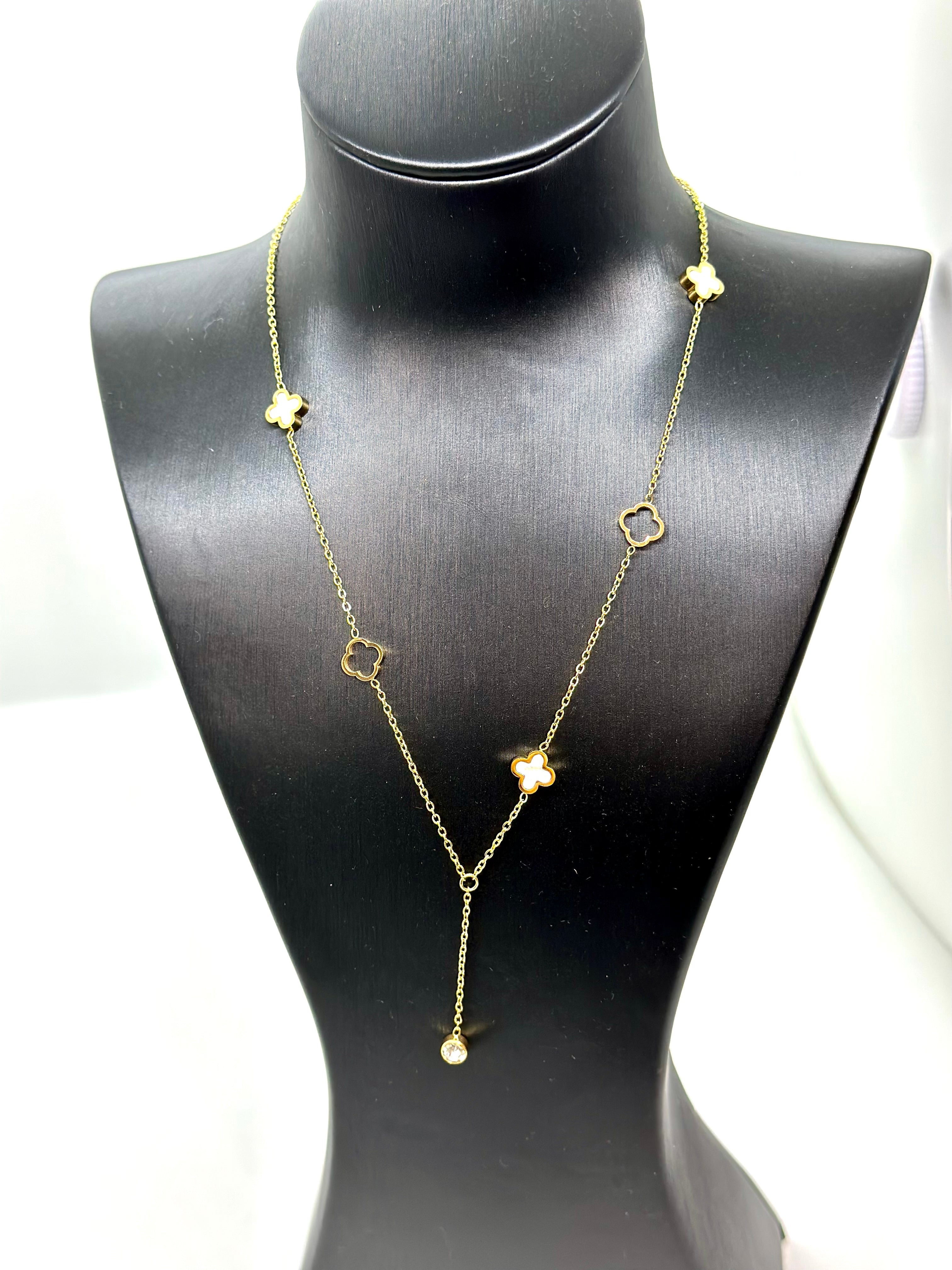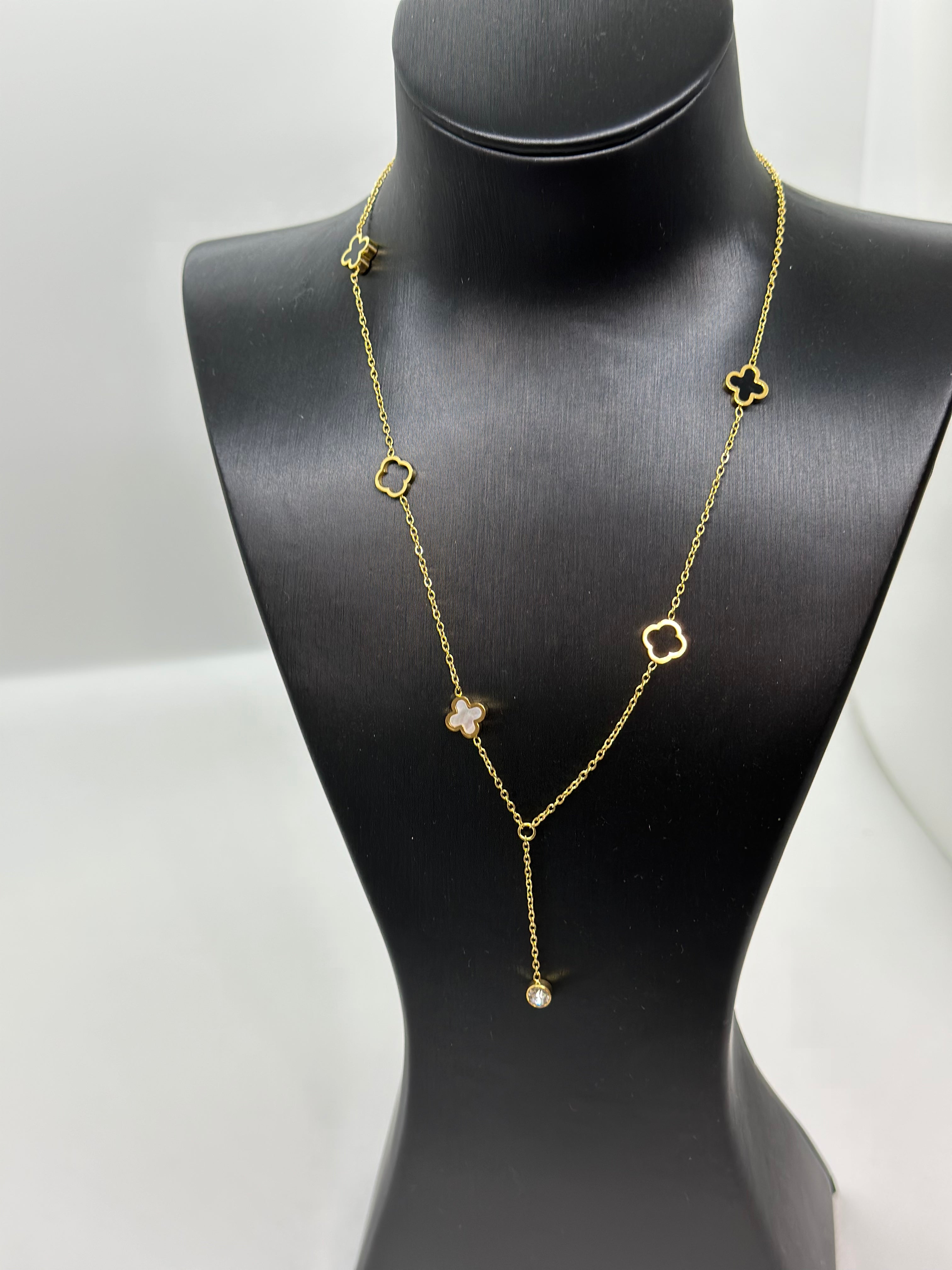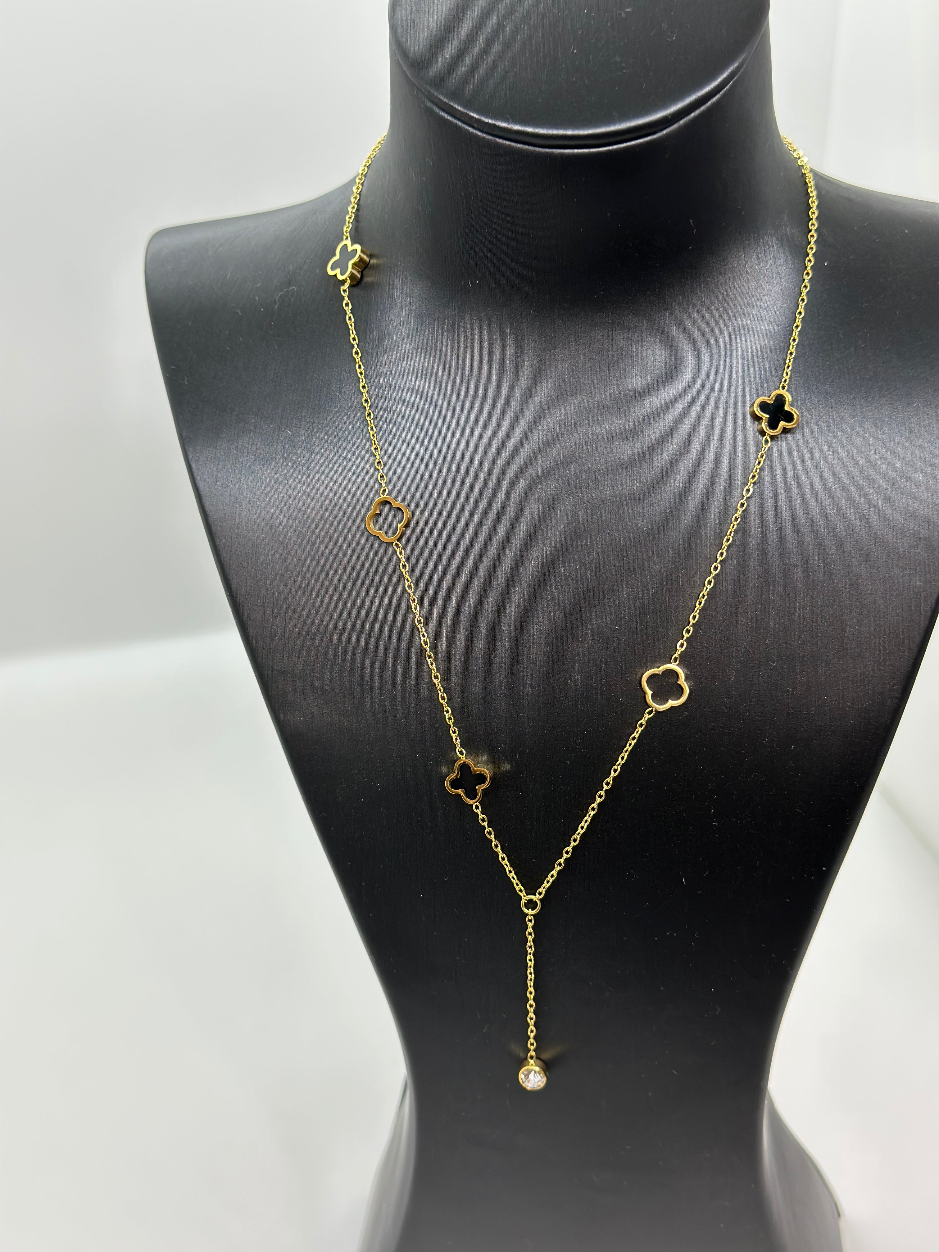 Ce magnifique collier trèfle en acier inoxydable combine élégance et durabilité. Les trèfles sont de couleur noir d’une côté et blanche de l’autre côté, offrant une finition unique et sophistiquée qui complémentera votre look.