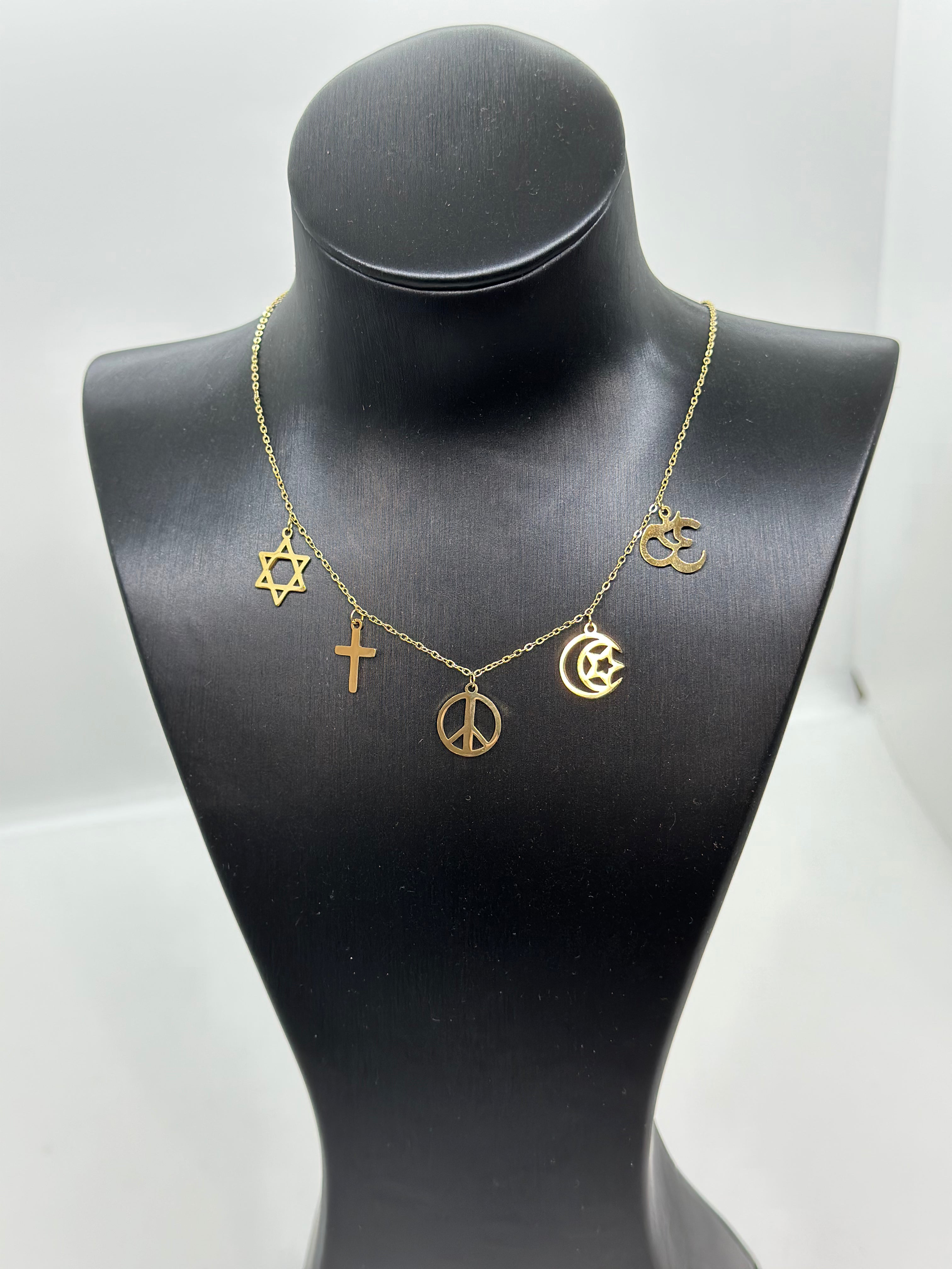 Le collier peace est un accessoire intemporel et distingué. Fabriqué en acier inoxydable, il est durable et résistant aux altérations et à la corrosion. Une symbolique remarquable représentant la paix entre différentes religions est gravée sur le pendentif, ce qui en fait un bijou élégant et profondément significatif.